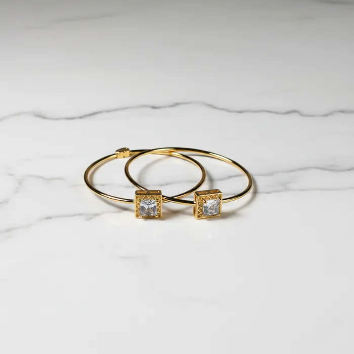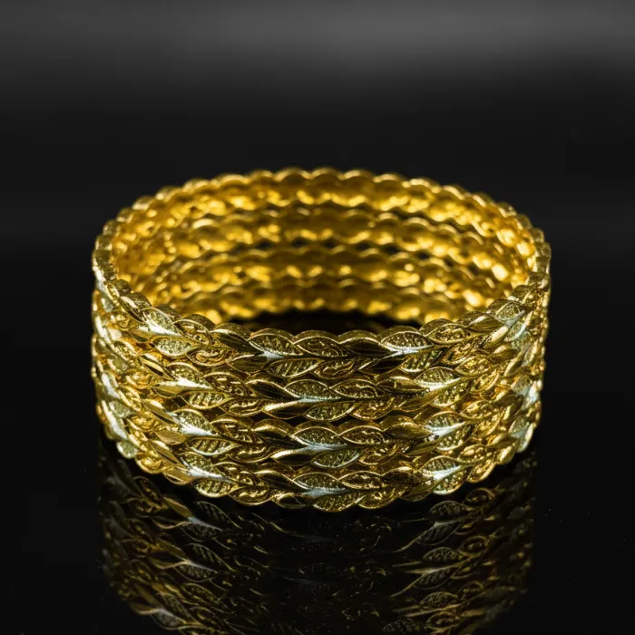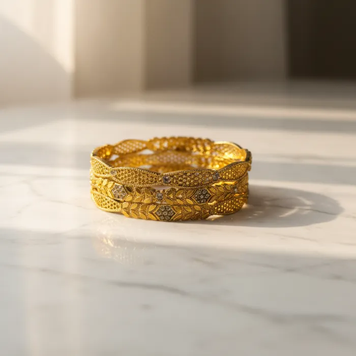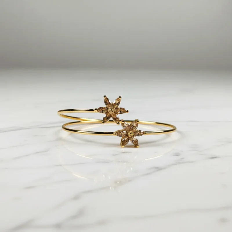 Exquisite Gold-Plated Floral Bangles Set with Diamond Accents
