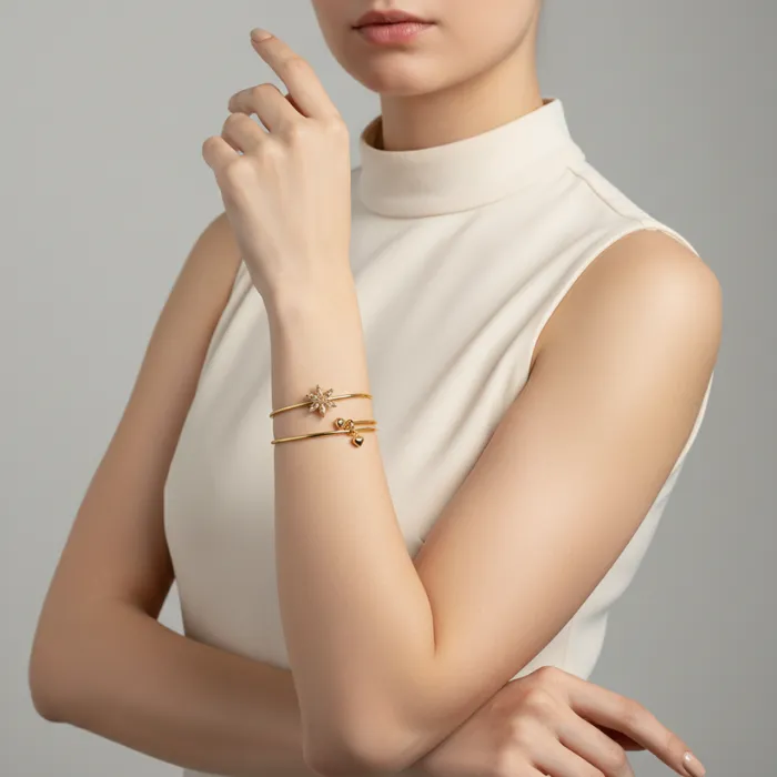 Gold Star Charm Bangle Bracelet – Elegant Women’s Jewelry