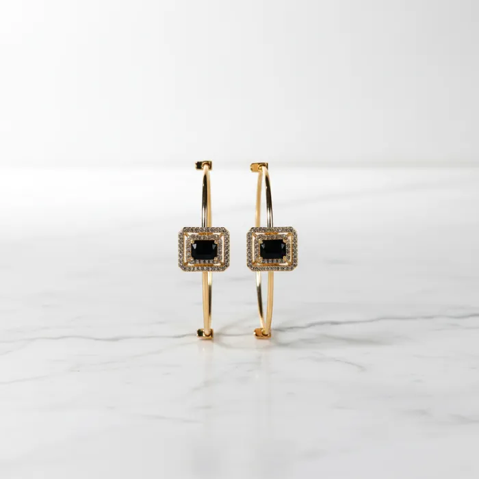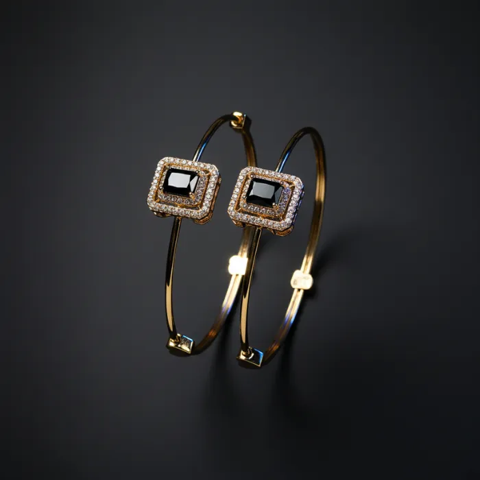 Elegant Gold-Plated Bangles with Black Stone & Charm