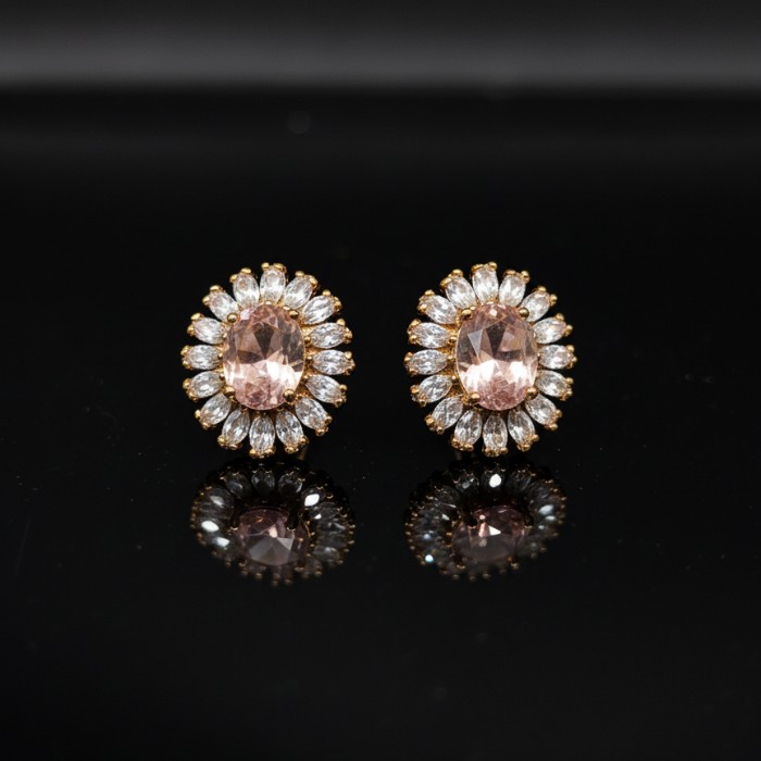 Rose Gold Plated Stud Earrings with Pink Stone & White Accents – Elegant & Stylish