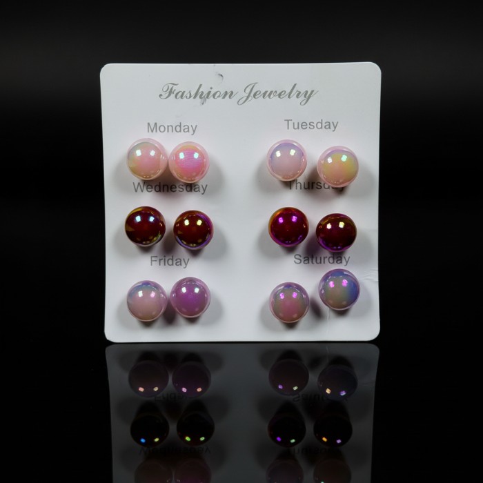 Fashion Jewelry 6 Pairs Colorful Stud Earrings