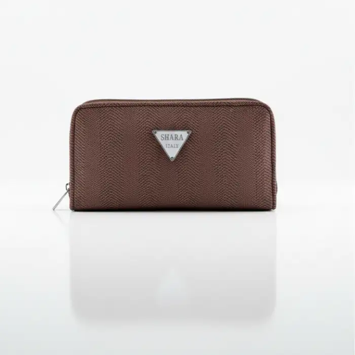 This sophisticated long wallet combines Italian-inspired design with practical functionality. Featuring a distinctive chevron-patterned texture in a versatile mauve-brown hue, it serves as both a secure organizer and a stylish clutch for quick outings.